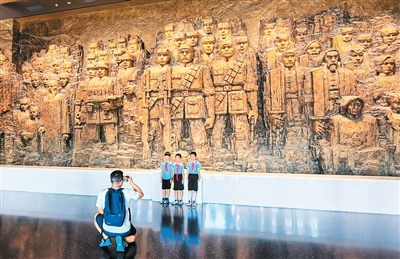 暑假期间,许多家长带着孩子前往中国人民抗日战争纪念馆参观、研学,一些孩子还特地系上红领巾。本报记者 尹 婕摄