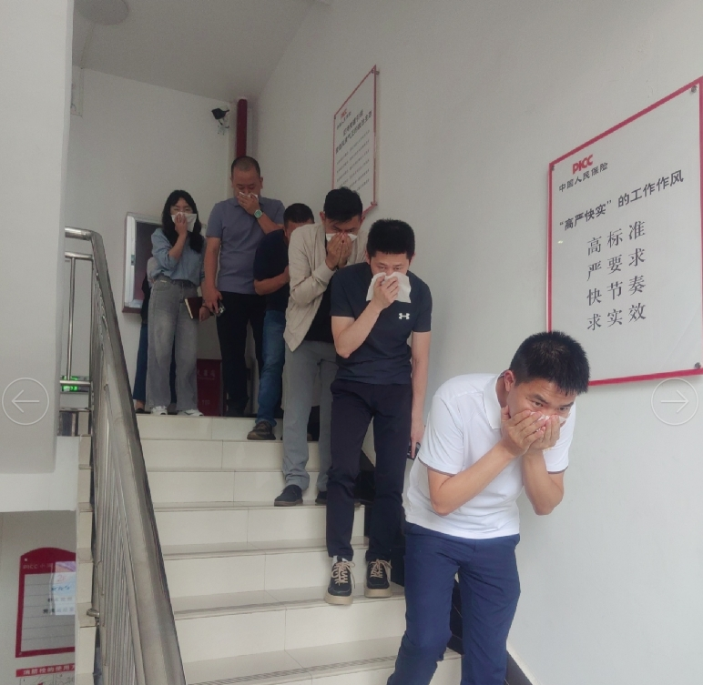 该公司结合职场情况组织员工开展应急逃生演练,模拟火情发生时,员工们迅速反应,第一时间用湿毛巾捂住口鼻,沿逃生通道弯腰低姿态有效撤离。在撤离过程中充分组织协调,确保每一位员工都能安全撤离。