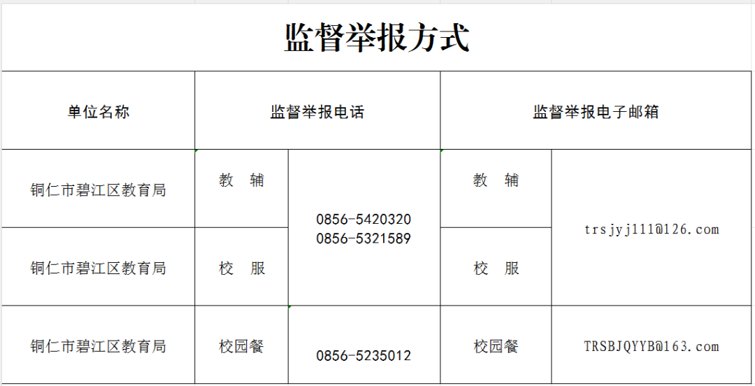 铜仁市碧江区关于公开征集教辅征订、校服选用、“校园餐”谋利问题线索及公开监督举报方式的通告