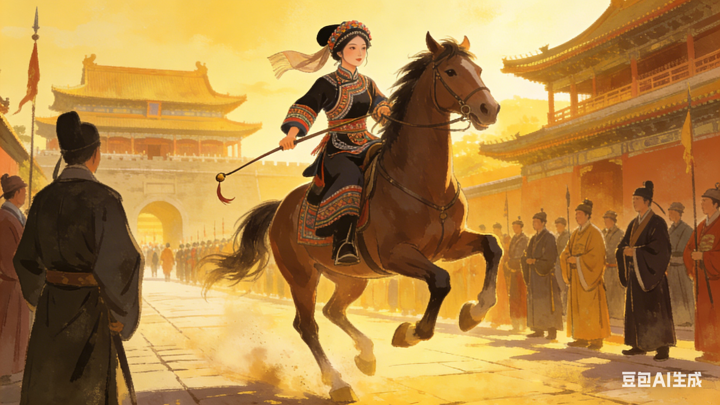 查慎行是清初著名诗人,康熙年间进士,曾入翰林院。他的《水西行》长达近百句,从水西土司的源头写起,历数其兴衰,最后以奢香的功绩作为转折点。“是时奢香一巾帼,跃马金陵谒天子。”这句诗中的“跃马”二字,极具动感。奢香不是被动地进京,而是主动出击,骑马奔赴南京。这种形象,与杨慎笔下的“左骖牡骊右牝黄”形成呼应,共同塑造了一个英姿飒爽的女杰形象。