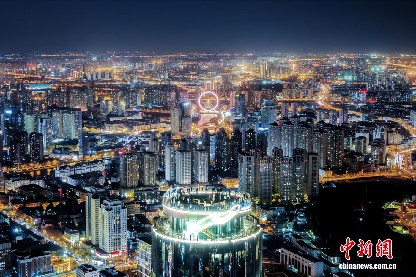12月20日,天津,民众在津湾云顶高空观景台观赏城市风景。(无人机照片)中新社记者 佟郁 摄