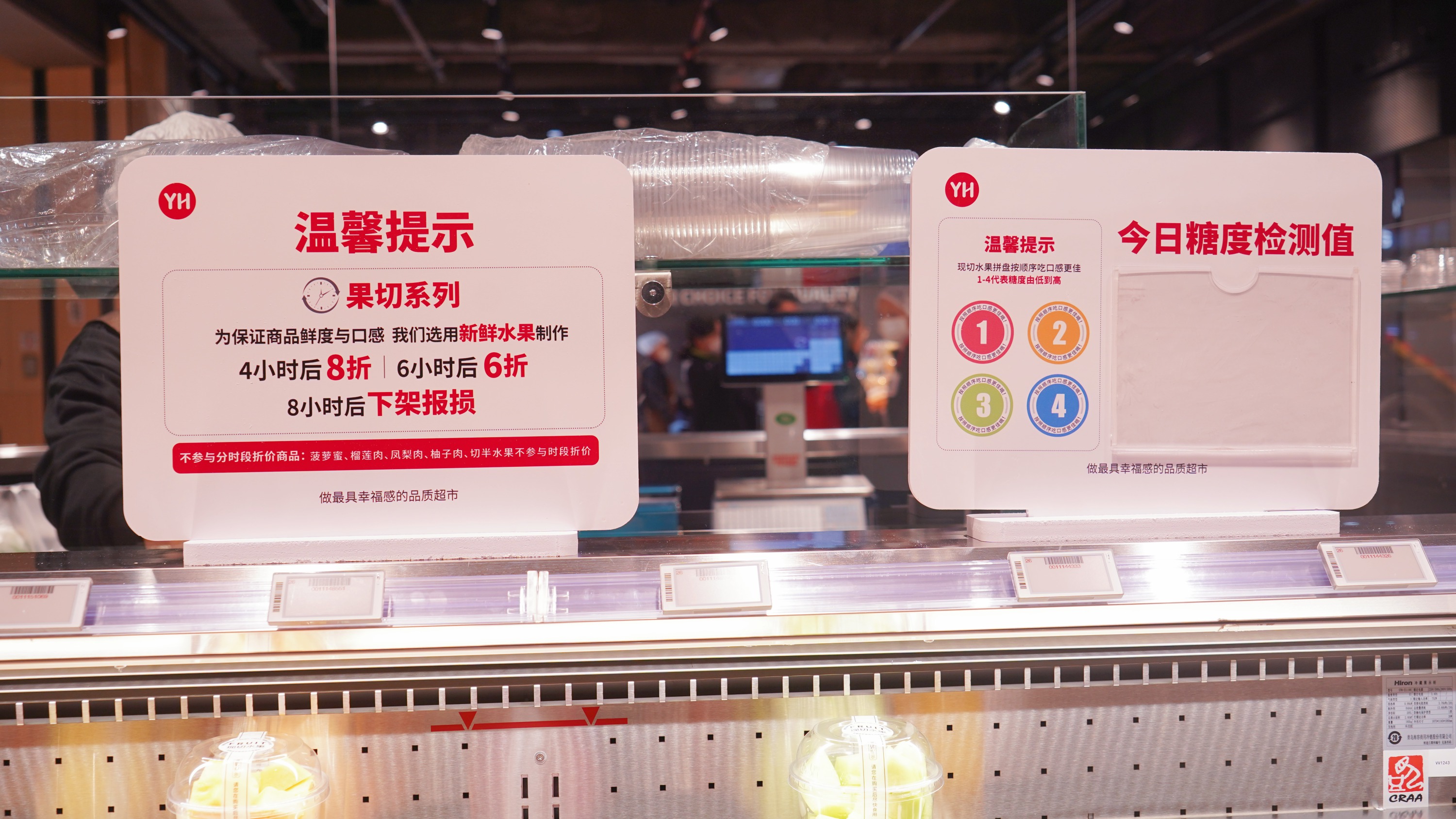 在食品安全方面,门店严格执行新鲜果切“468原则”(超4小时八折、6小时六折、8小时下架),并对叶菜、肉禽、水产等部分商品实行日清折价,杜绝销售隔夜商品。
