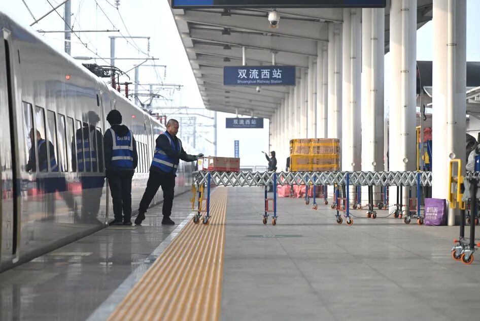 作为利用整列动车组开展高铁快件批量运输的始发站之一,双流西站2016年投入使用,2023年转型专注快运服务;同年7月12日,成都至昆明间高铁快运列车正式开行,每日2列对开穿梭于两地之间。