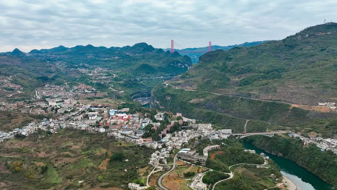 鸭池河之上,大桥屹立在崇山峻岭之间,连接此岸彼岸。山、水、桥相映,构成一幅大气磅礴、蔚为壮观的黔山秀水美景,打卡非常出片!