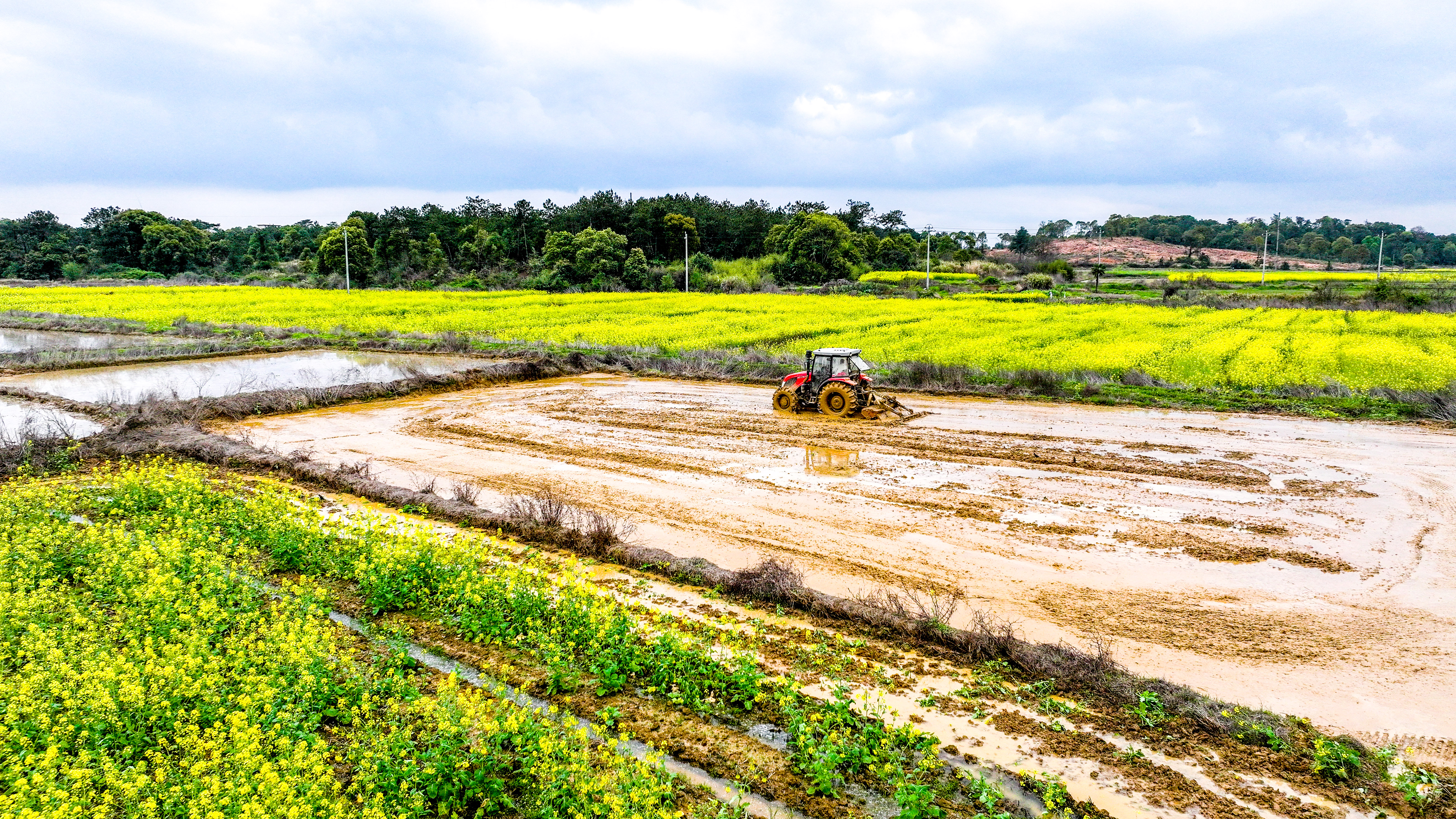 随着气温逐渐回升,江南各地进入春耕备耕关键期,沃野田畴,春耕正忙。江西省宜春市奉新县赤田镇广袤田野间油菜花竞相绽放,金黄花海与村落、水田、忙碌的身影书写春日里的丰收希望,勾勒出一幅生机盎然的春日田园画卷。作者:鲍赣生 摄