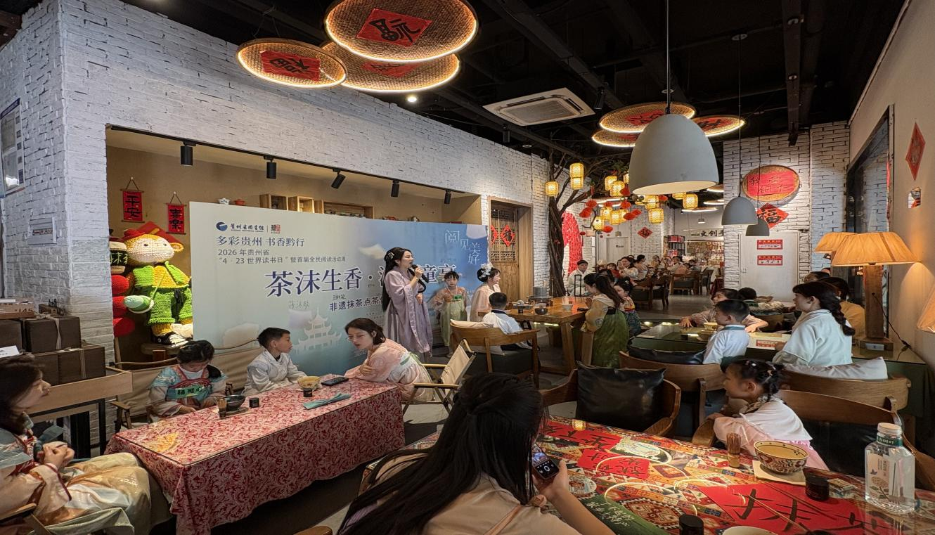 春和景明,茶香氤氲。为迎接“4·23世界读书日”,深入推进“多彩贵州 书香黔行”全民阅读活动,4月18日,铜仁市碧江区图书馆在中南门古城廿柒葉(新市广场店)举办“茶沫生香·泡泡童享”非遗抹茶点茶体验活动,21组亲子家庭齐聚现场,在茶香古韵中感受非遗魅力,乐享书香与传统文化交融的美好时光。