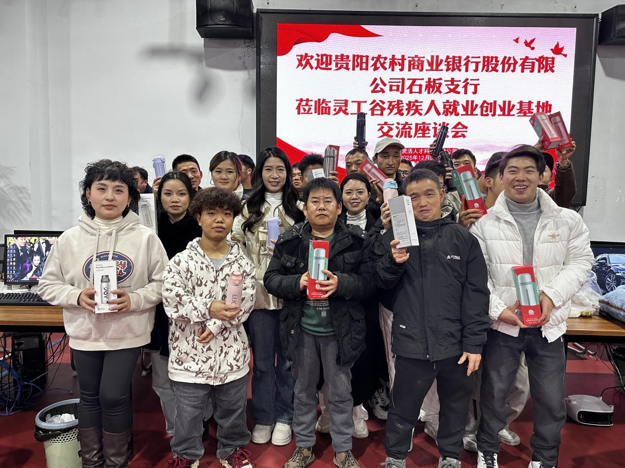 12月3日,恰逢第34个国际残疾人日,贵阳农村商业银行股份有限公司石板支行(以下简称“石板支行”)慰问组一行走进“灵工谷”残疾人就业创业基地,开展暖心慰问活动。此行既为残疾人创业者送去冬日里的关怀与暖意,更紧扣国际残疾人日助残共富主题,通过实地调研精准把握基地运营实况,以金融担当为残疾人就业创业事业赋能增效。
