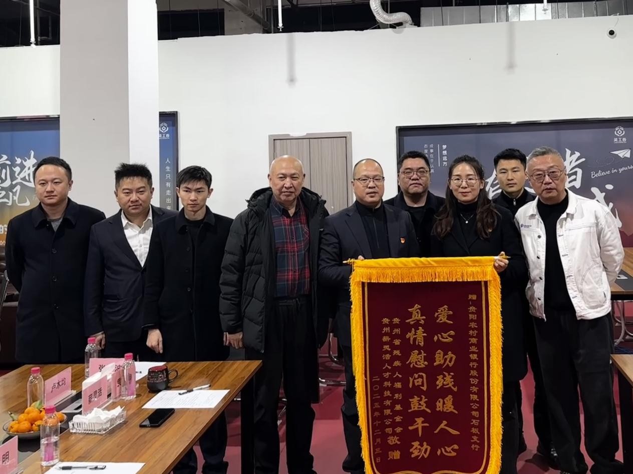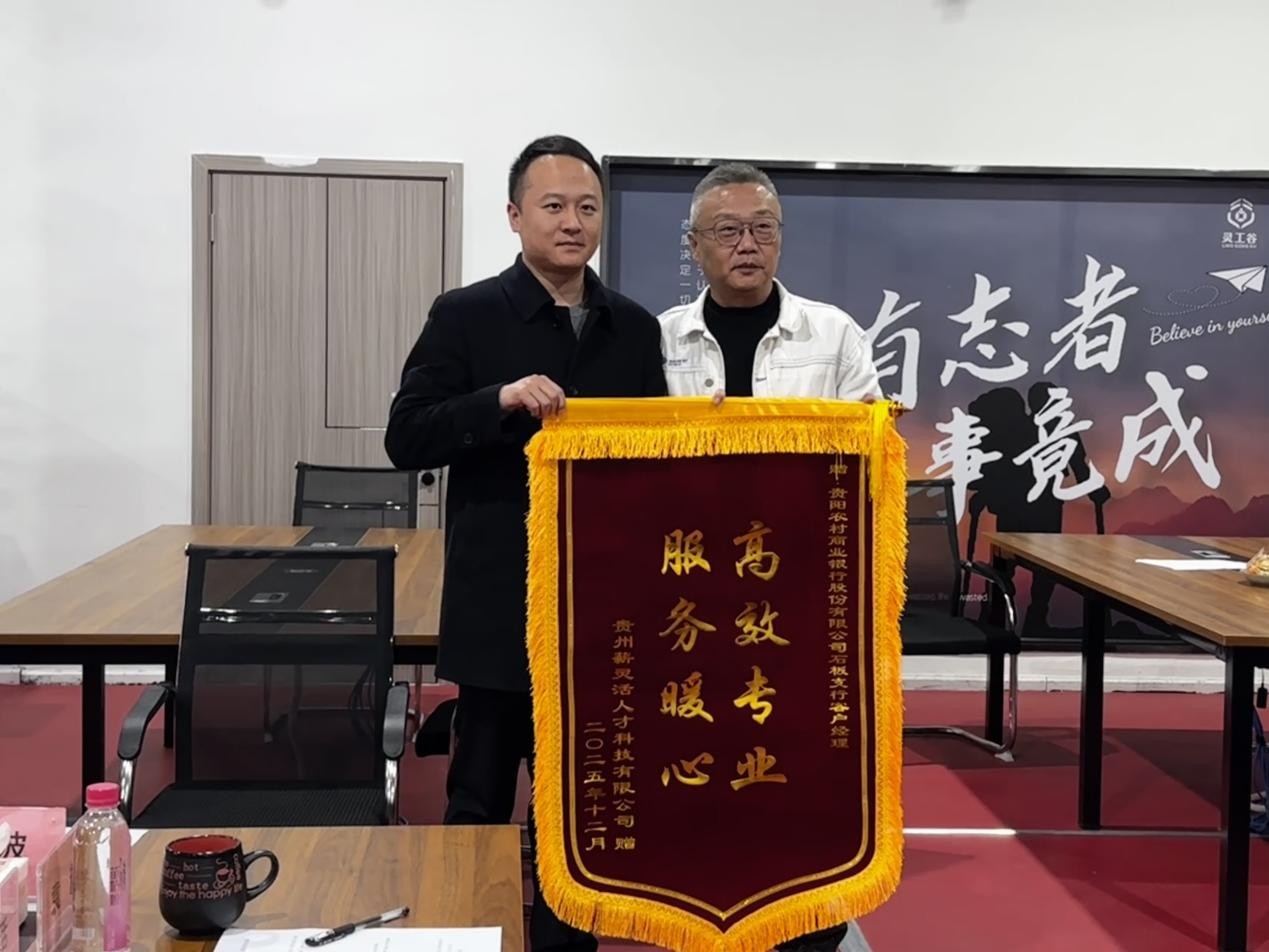 贵州省残疾人福利基金会秘书长赵欣林应邀出席慰问活动,并与贵州薪灵活人才科技有限公司共同为石板支行送上锦旗。