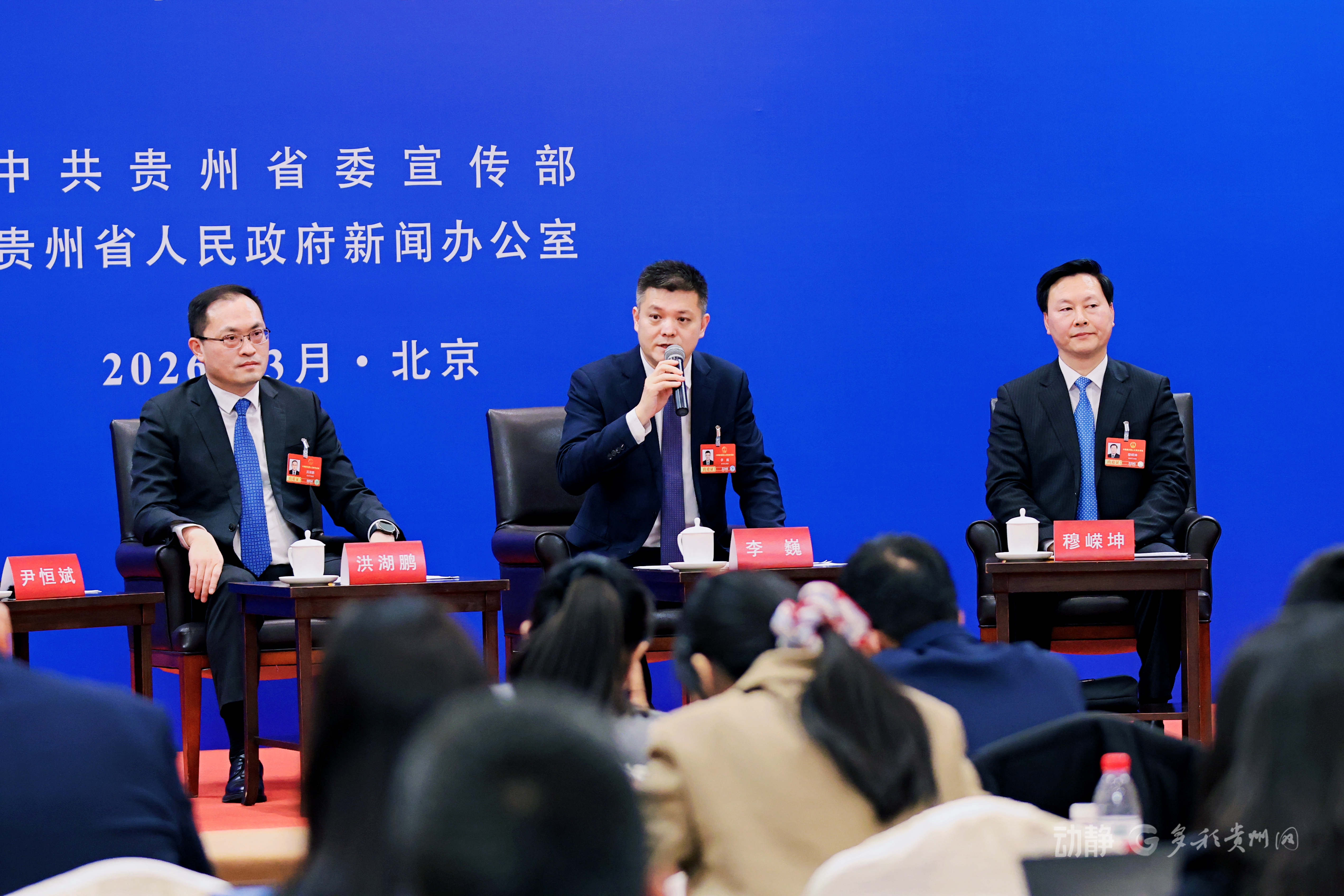 2026年全国两会贵州代表团第一场集中采访今晚(3月7日)举行,黔南州委书记洪湖鹏,六盘水市委副书记、市长李巍,安顺市委副书记、市长尹恒斌,铜仁市委副书记、市长穆嵘坤,黔西南州委副书记、州长黄兴文五位全国人大代表做客演播室,就各地发挥比较优势,落实大抓产业、大抓项目、大抓招商、大抓经营主体“四个大抓”回答记者提问。