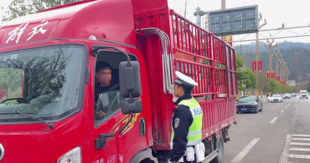 近日,遵义高速交警在遵义东收费站入口开展交通违法整治时,发现一辆货车载货长度明显超出原来车身,存在较大安全隐患。