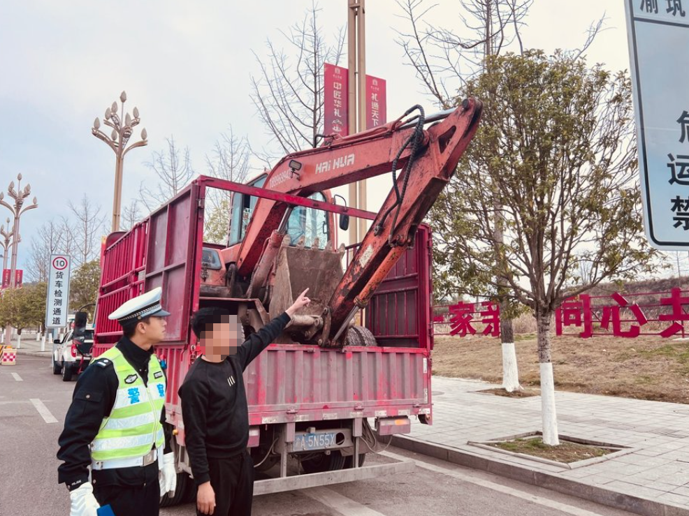 货车里居然装了一个挖掘机!被交警紧急拦停