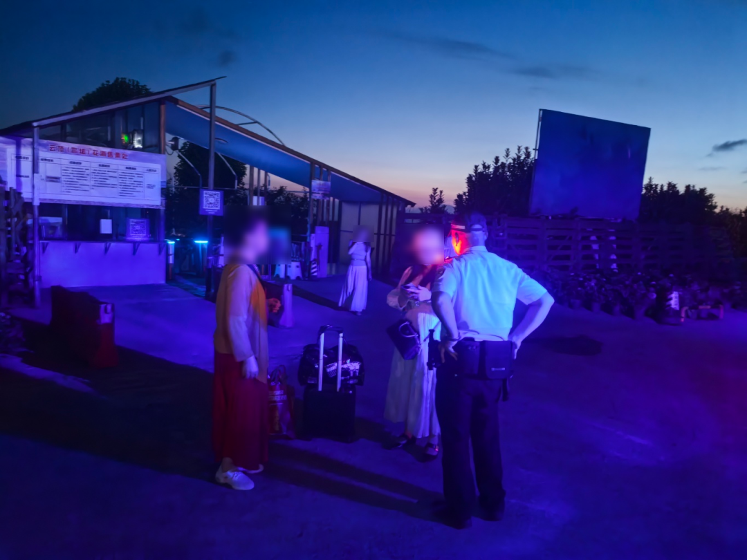 但这时,一个问题却摆在了郭女士面前:因为地势关系,在游客潮散去后,高坡乡附近的出租车数量便会显著减少。一连数十分钟,不论是出租车还是网约车,郭女士连一个影子都没见着。眼看景区已经熄灯、蚊虫开始聚拢、身旁身患腿疾的母亲也隐隐有旧疾复发的迹象,想到那句”有困难、找警察“的警民之约,心急如焚的郭女士赶忙拨通了报警电话。