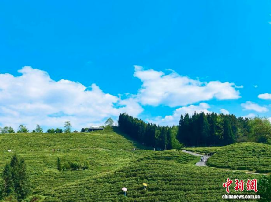 图为贵阳市观山湖区的茶园里,许多父母带着孩子来体验采茶。记者 周燕玲 摄