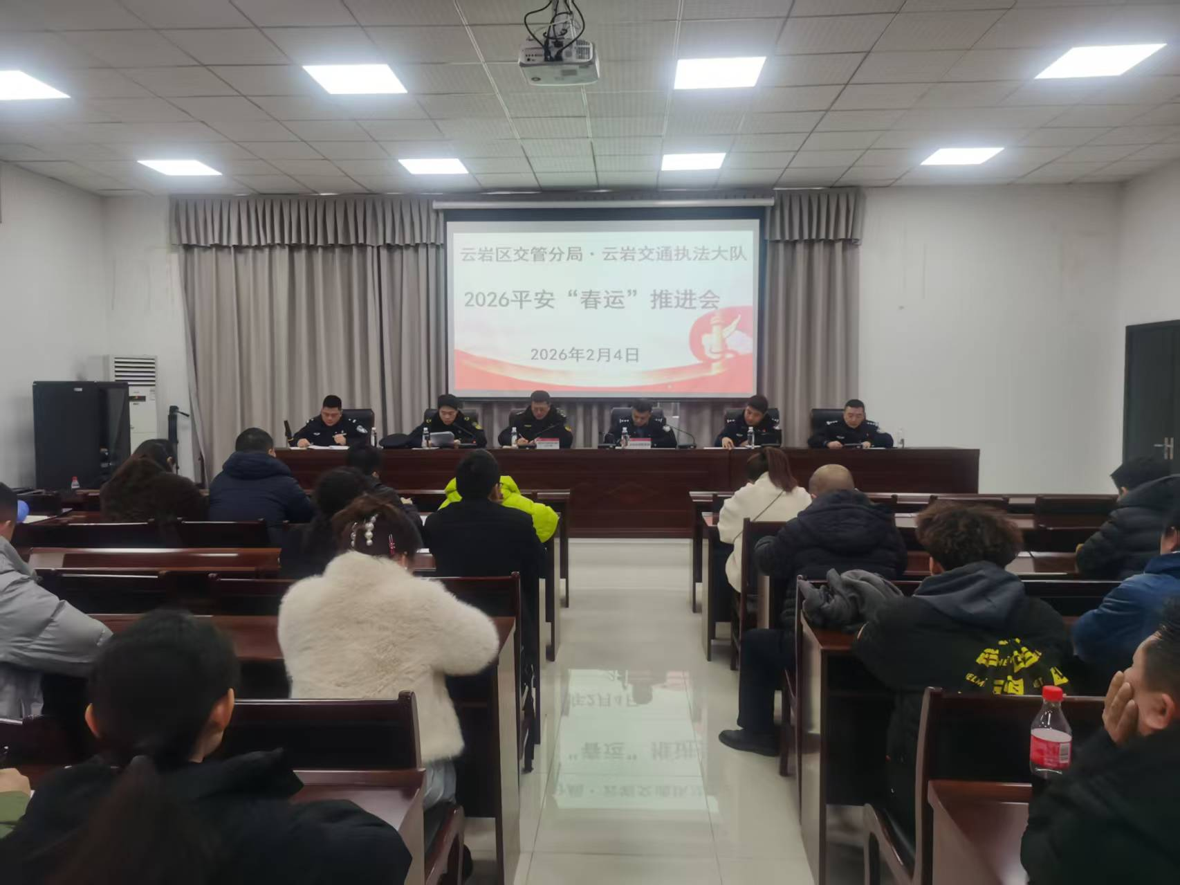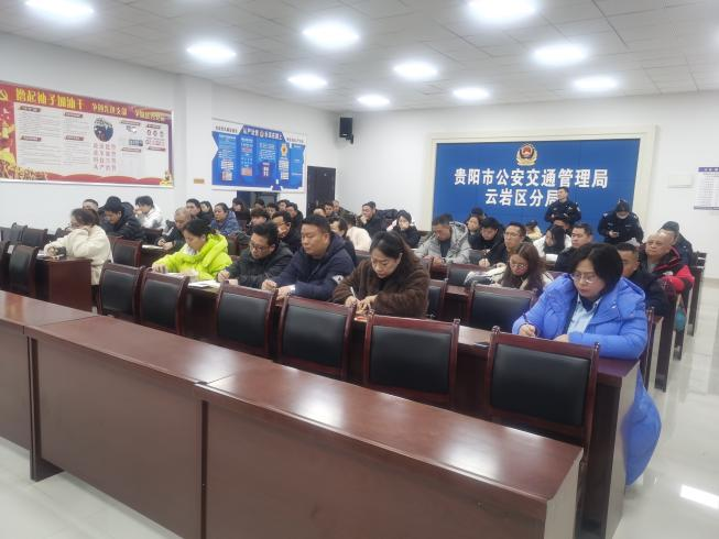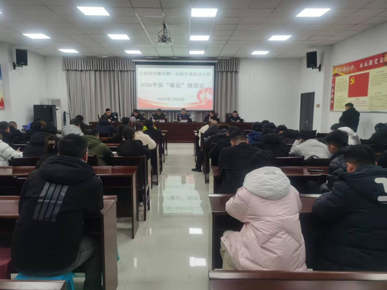 为深入贯彻落实省、市春运工作部署要求,全力保障春运期间辖区道路交通安全、有序、畅通,2026年2月4日贵阳市交通执法支队云岩大队联合贵阳市公安局交管支队一大队,在交管一大队会议室组织召开云岩辖区2026年平安春运推进会。交通执法云岩区大队、交管云岩分局相关负责人及辖区“两客一危一网一货及出租”企业负责人参会。
