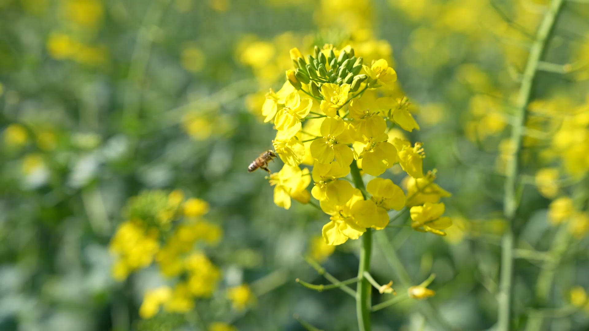 油菜种在村前的河谷坝区上,千亩油菜花开似海,一眼看不到边。春风吹拂,金黄的花海翻涌,油菜花与春风的碰撞把春天点缀得多姿多彩。