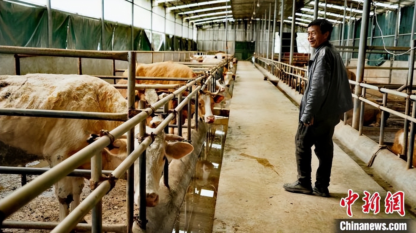 图为胡天云在自己的肉牛养殖场。周燕玲