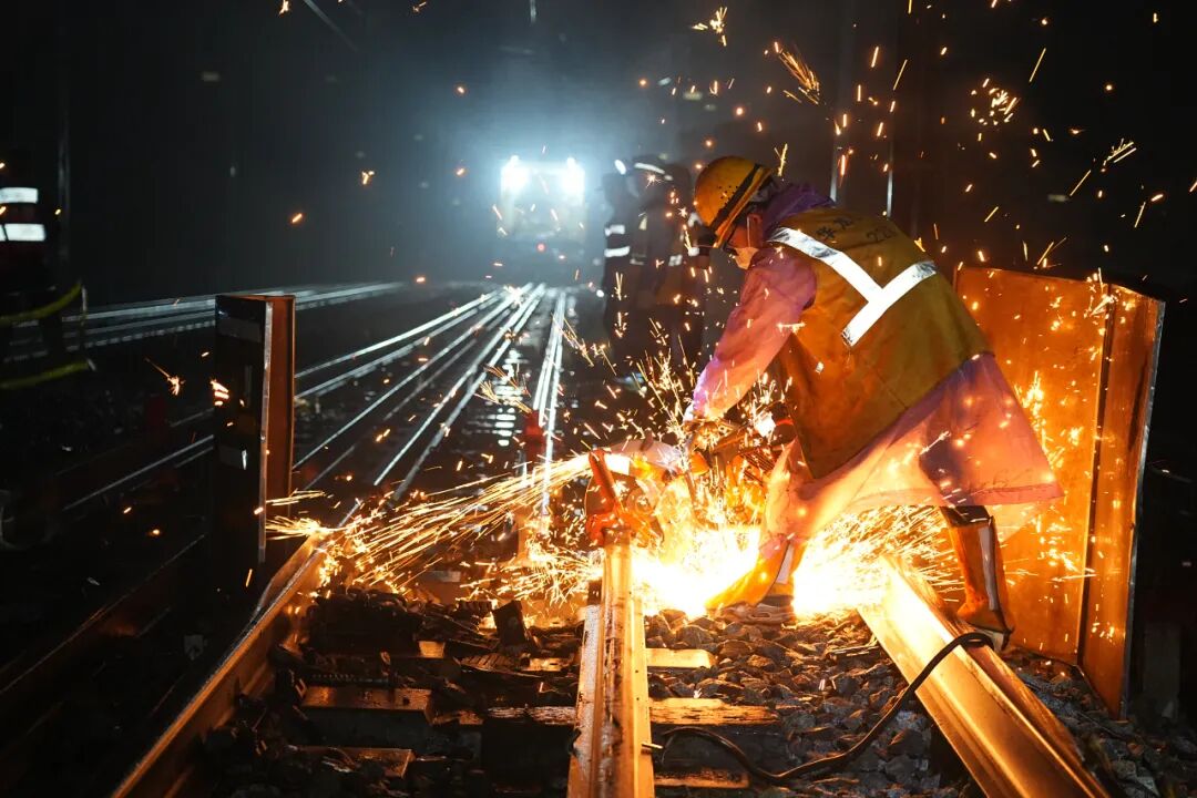 为了最大限度减少施工对行车的影响,成都工务大修段在重庆工务段管内首次采用“气压焊+闪光焊”同步焊接钢轨,相较于传统焊接方式,该工艺大幅降低伤损概率,“天窗”时间节省20%以上。与此同时,人工探伤周期由半年延长至两年,不仅减少了养护成本,还降低了作业频次,为线路长期安全稳定打下了坚实基础。