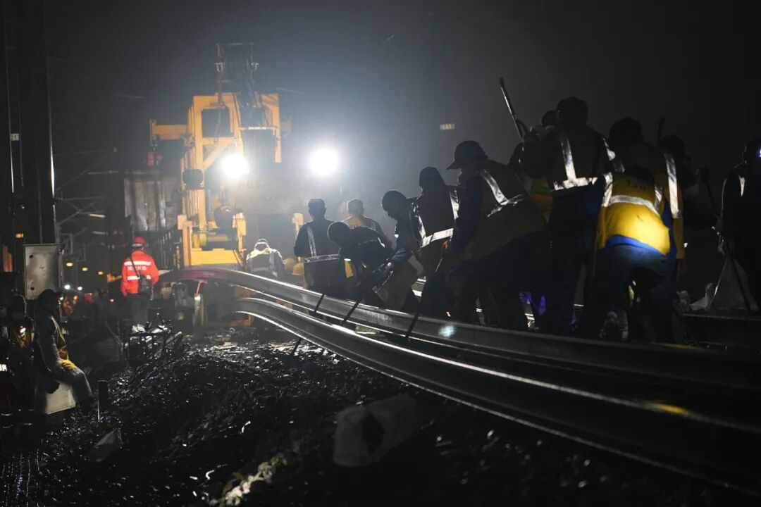 本次长轨更换施工采用郑铁装备HGC-IV型换轨车,能够精准高效地完成钢轨的起吊、运输和铺设作业,在280分钟的“天窗”内,仅需30分钟就能完成一公里钢轨的核心换骨手术,大大提高了换轨质量与效率,告别传统手工翻轨的人海战术,为施工和行车安全上好双保险。