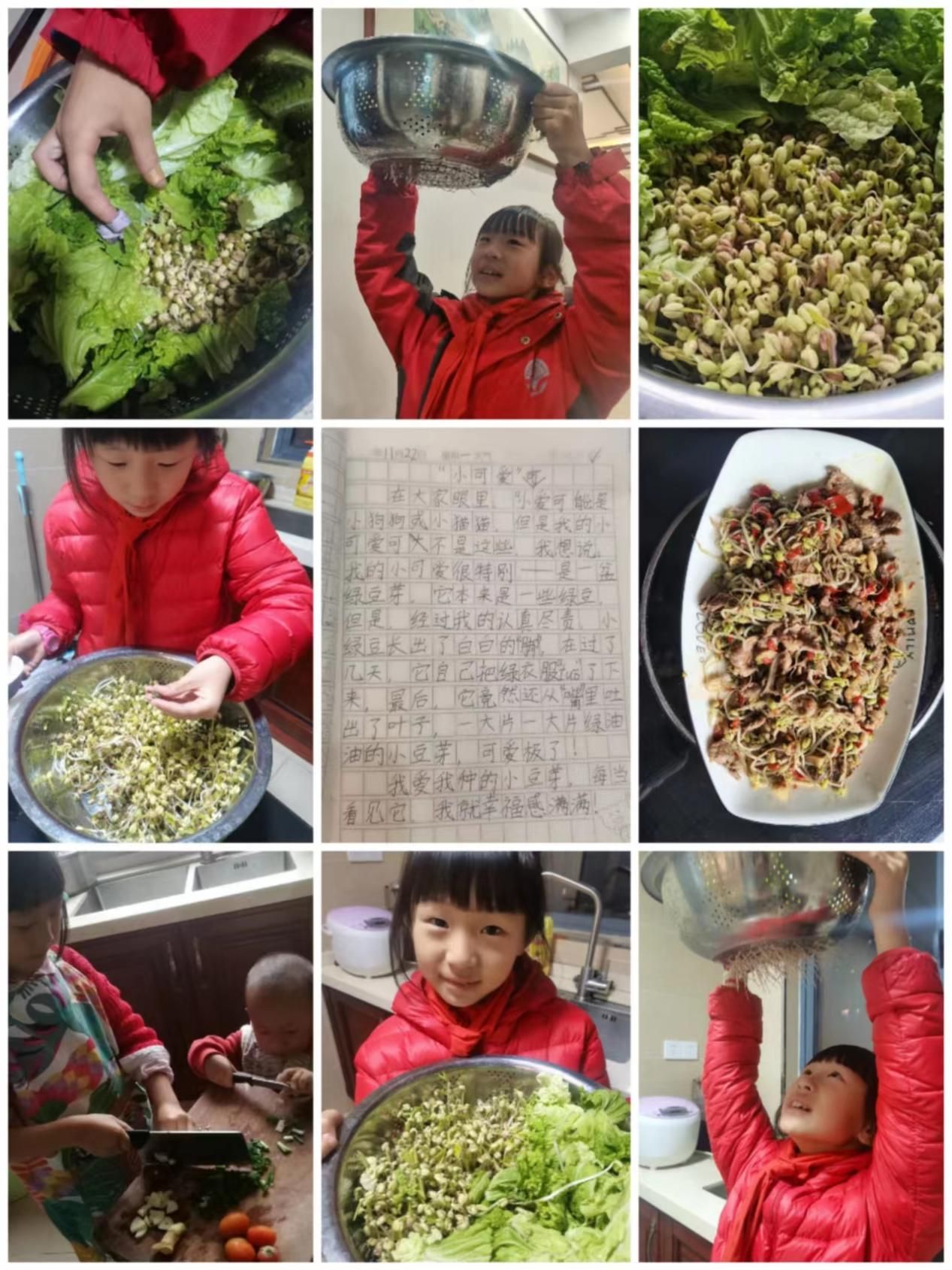 (陶霞凤与女儿一起完成《豆芽的一生》的家庭作业)