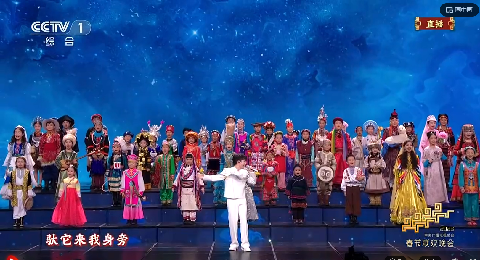 今天(2月16日)是除夕,万家灯火。在北京的某酒店房间里,田和伟和妻子紧紧盯着电视屏幕。当56个身着民族盛装的小朋友欢快登场时,他一眼就认出了那个熟悉的小小身影——6岁的女儿田歆然。作为土家族的代表,她正踩着欢快的步伐,在中央广播电视总台《2026年春节联欢晚会》歌曲《吉量》中,与歌手周深及贵州省黔东南州"贵州村T"表演队一同,向全国观众展示着贵州"村T"的独特魅力。