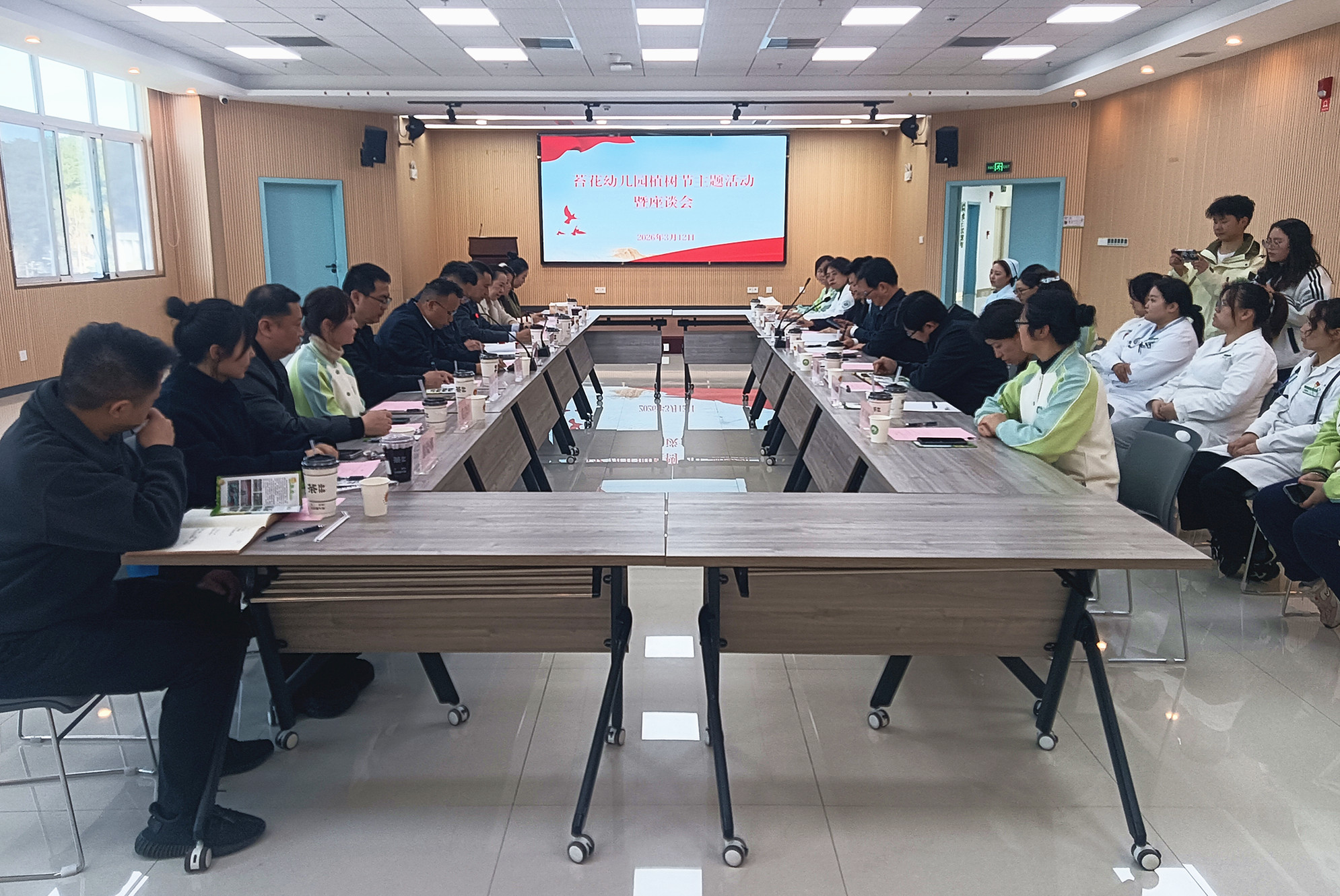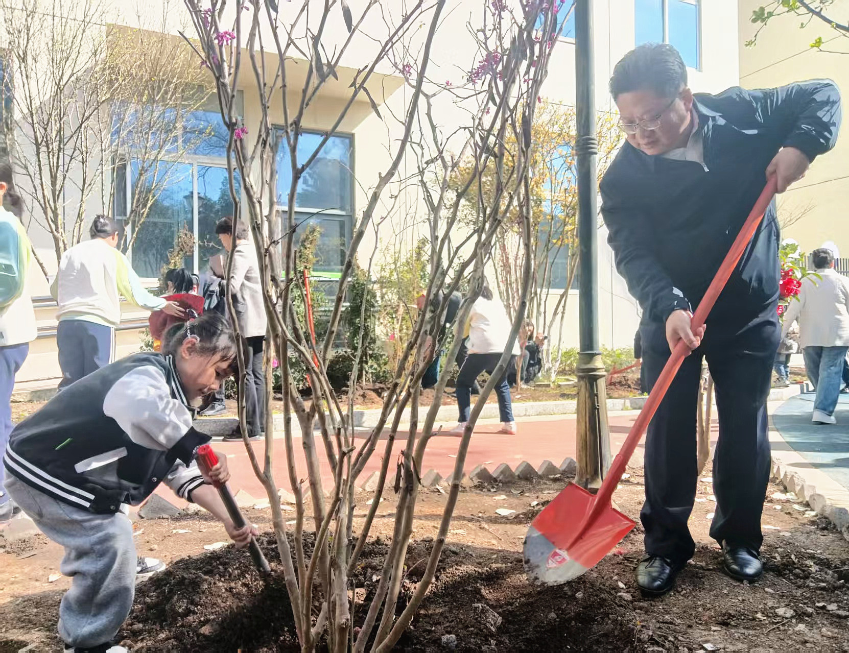 调研期间,调研人员与省残疾人康复中心儿童康复教育示范基地儿童一起植树护苗,并参观相应场地设施。