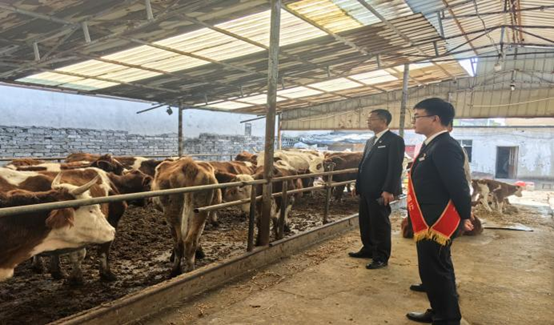 图为:普惠青年先锋队走访某肉牛养殖大户,了解企业生产经营情况。