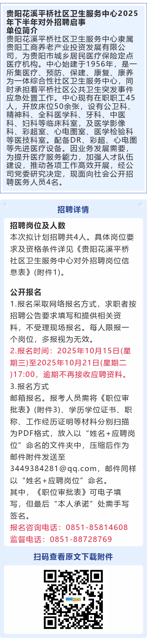 贵阳花溪平桥社区卫生服务中心招聘!年薪7-10万元!大专起报!