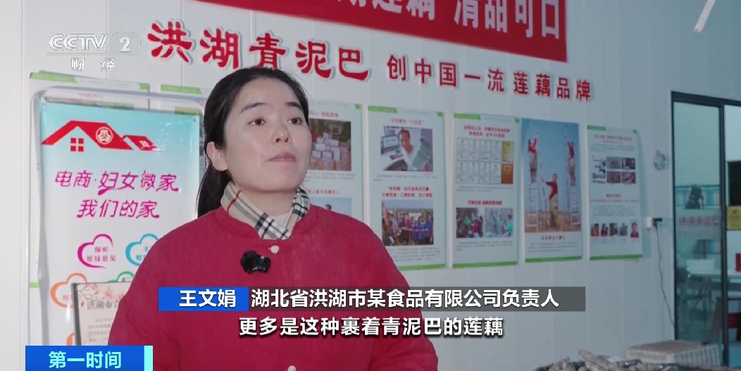 湖北省洪湖市某食品有限公司负责人 王文娟:受欢迎的更多是裹着青泥巴的莲藕,现在每天莲藕销量五六千斤左右,我们年销量超八百万元。莲藕卖得好,藕农的收益也会增加。
