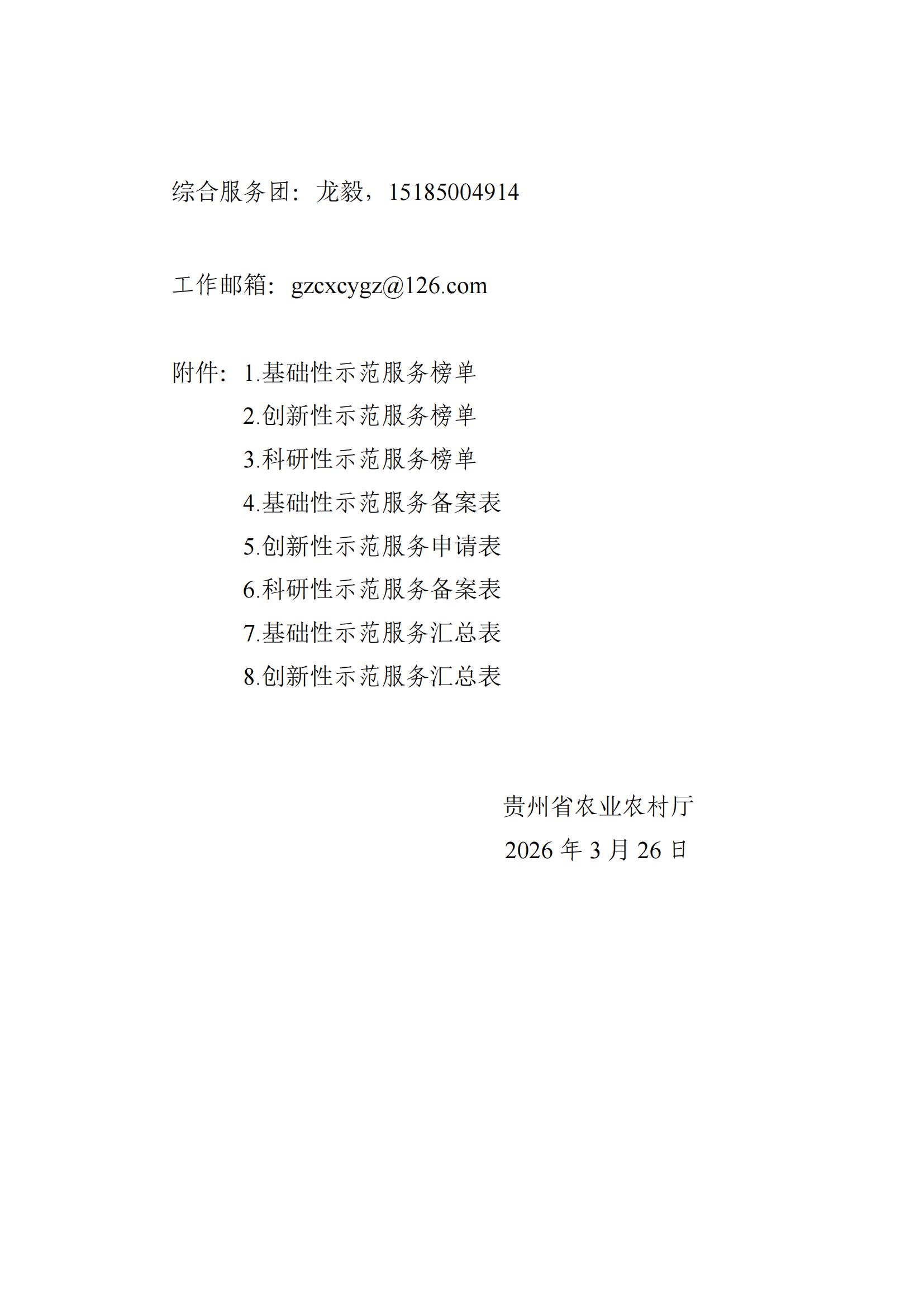 为深入贯彻落实省委一号文件精神,扎实推进激励农业技术人员创新创业“揭榜挂帅”(以下简称“揭榜挂帅”),近日,贵州省农业农村厅正式印发2026年度基础性示范服务、创新性示范服务和科研性示范服务榜单,全面启动新一年度“揭榜挂帅”工作。