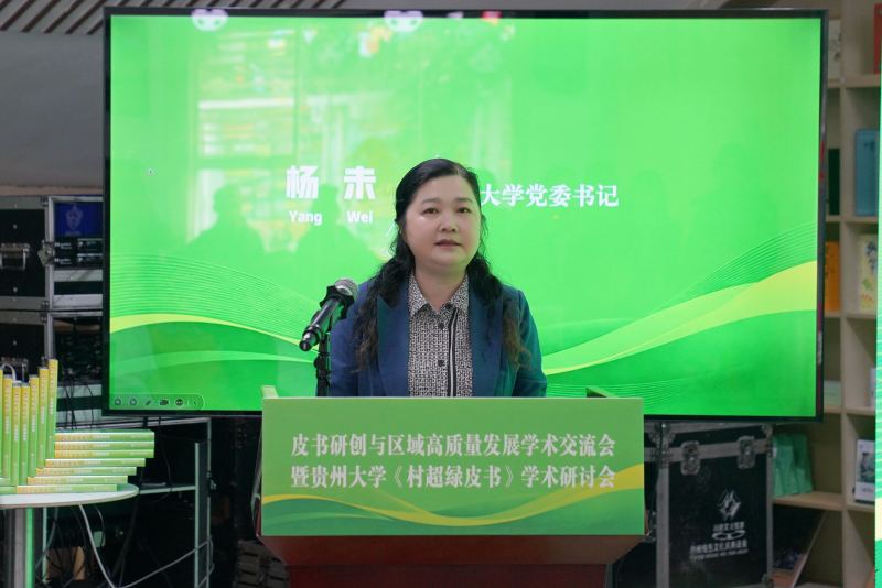 杨未在致辞中说,“村超”的火爆出圈,是贵州在中国式现代化进程中文体旅商融合发展的生动缩影。“村超”的成功是群众足球基础、民族文化底蕴、电商产业支撑及跨媒介谋划同频共振的结果。文旅体商融合发展的关键在于“融”,核心在于坚持增收为民让发展红利直达民生、坚持文化为根让文化滋养融入日常、坚持协同创新让发展活力充分汇聚。贵州大学将以绿皮书发布为新起点,继续推进皮书系列编撰,当好地方发展的智库和产业转型的参谋。