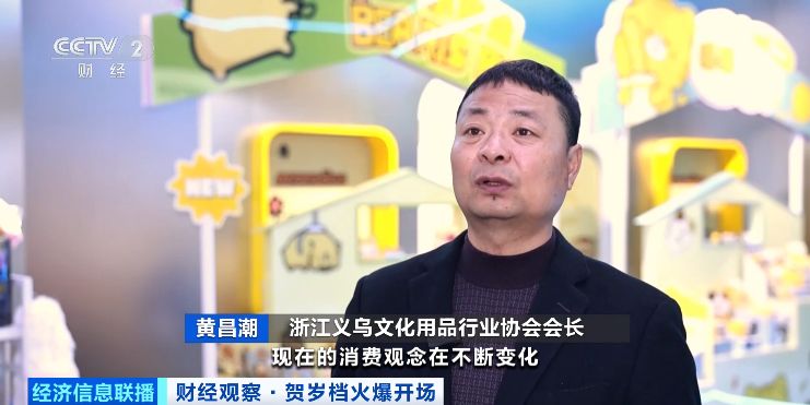 浙江义乌文化用品行业协会会长 黄昌潮:现在的消费观念在不断变化,情绪价值、IP的产品,原来比如一支笔售价四五元,加IP后能够增加20%至30%的利润空间。通过IP赋能,相关文化用品企业增加销售额1亿多元人民币。