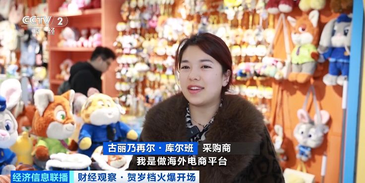 采购商 古丽乃再尔·库尔班:我做海外电商平台,这次专门来采购《疯狂动物城2》的公仔、包包、挂件之类的,这是本月第四次过来采购。
