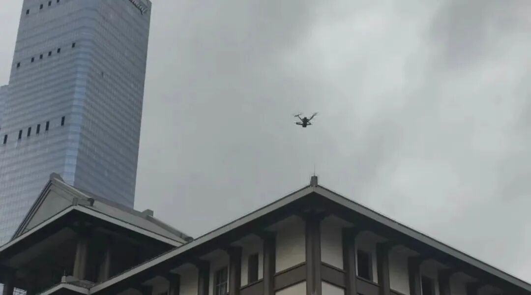 图丨花果园街面警务站无人机空中喊话