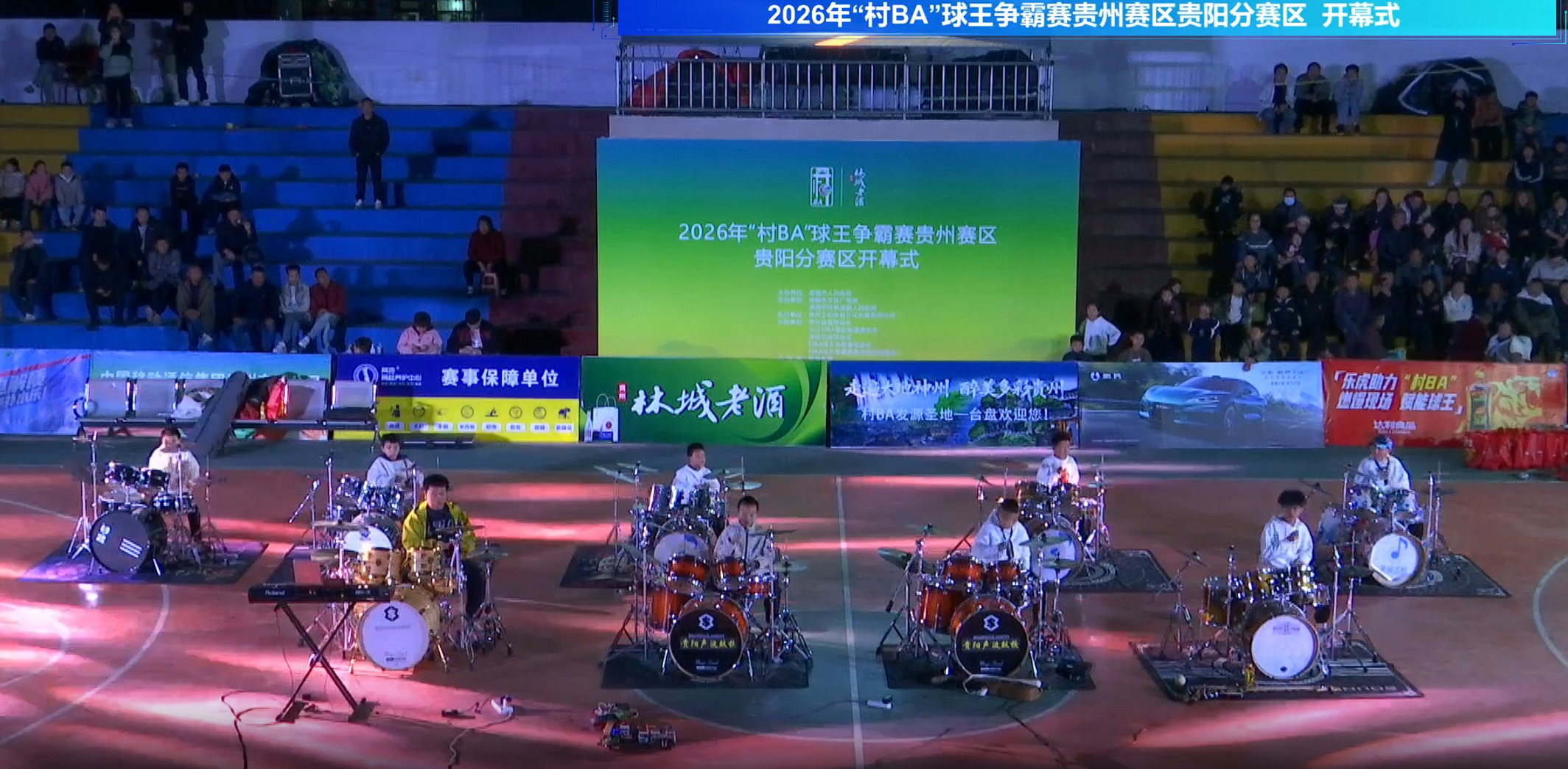 19时,开幕式深山音乐会惊艳登场,贵州广播电视台主持人倾情主持,点燃全场热情。宣传片播放后,森林人乐团的架子鼓合奏瞬间将现场氛围拉满,铿锵节奏点燃篮球激情。随后,主持人致欢迎词并介绍活动概况与到场领导嘉宾,清镇8支参赛球队与裁判员队伍依次入场,迈着整齐的步伐展现出昂扬的竞技风貌。庄严的奏唱国歌环节后,清镇市红枫镇党委书记王家军致欢迎辞,向到场嘉宾、参赛队伍与市民游客表示热烈欢迎;村BA球王争霸赛组委会官方发言人送上美好祝福,球员代表与裁判员代表分别宣誓,承诺将以公平、公正、拼搏的态度参与和执裁赛事。在全场的期待与欢呼声中,相关领导正式宣布 2026“村 BA”球王争霸赛贵州赛区贵阳分赛区开幕。
