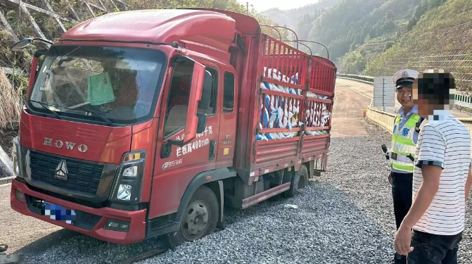 近日,遵义市公安交通管理局高速五大队民警接到驾驶人报警,在正习高速公路249km+100m处,习水往正安方向,他的车辆因刹车不灵,随即冲上了避险车道出不来了,请求救援。