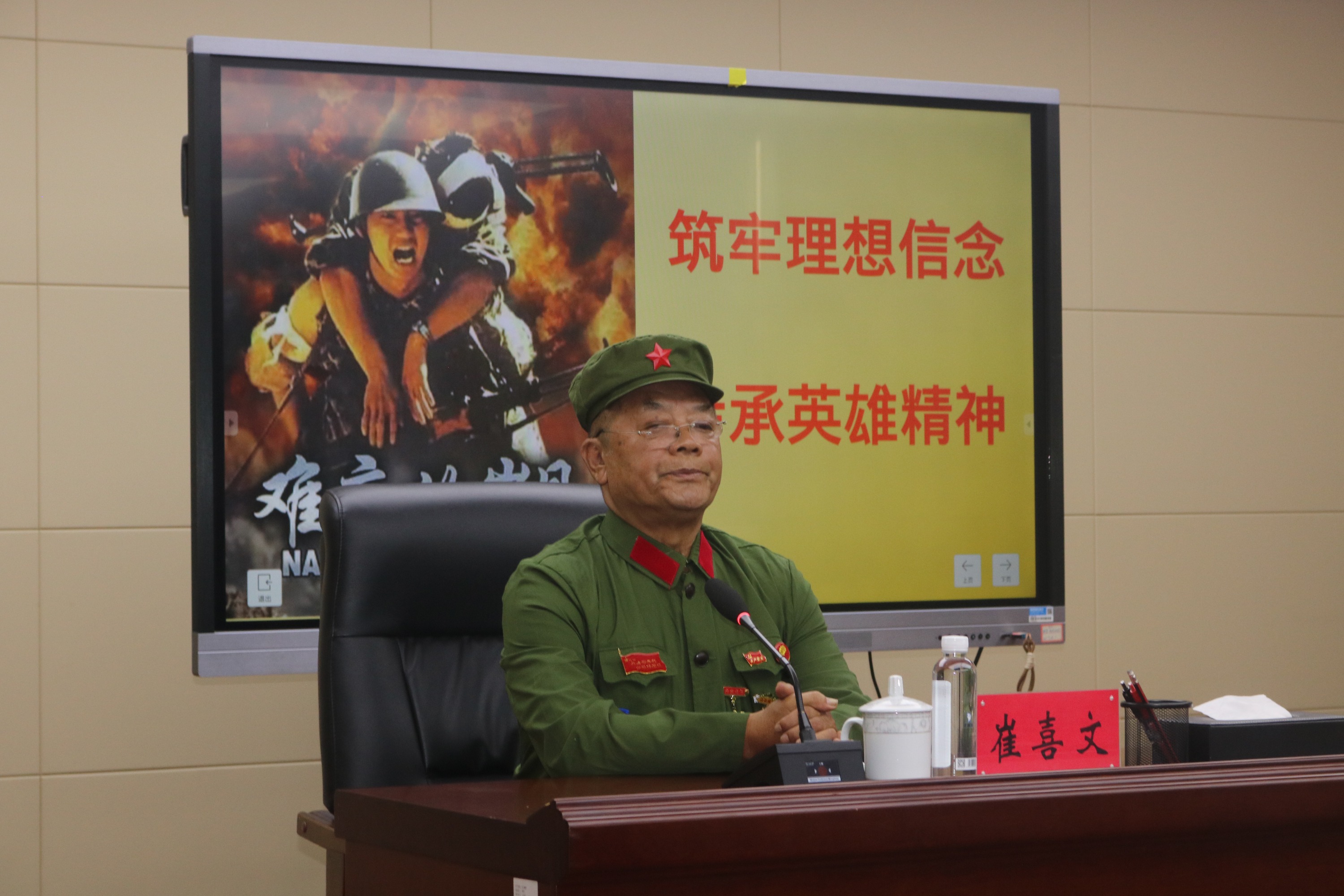 老兵崔喜文则围绕建党初心、长征精神与抗日战争中的英雄事迹展开分享。他深情讲述了中国共产党在艰难岁月中诞生成长、带领红军历经长征考验的峥嵘历程,讲述了抗日战争时期无数先烈为民族独立浴血奋战的感人故事,用历史细节诠释了“为有牺牲多壮志,敢教日月换新天”的革命豪情,引发在场人员的强烈共鸣。