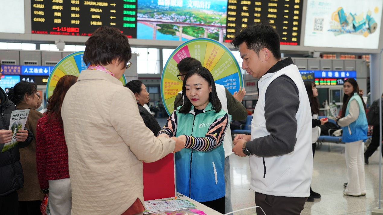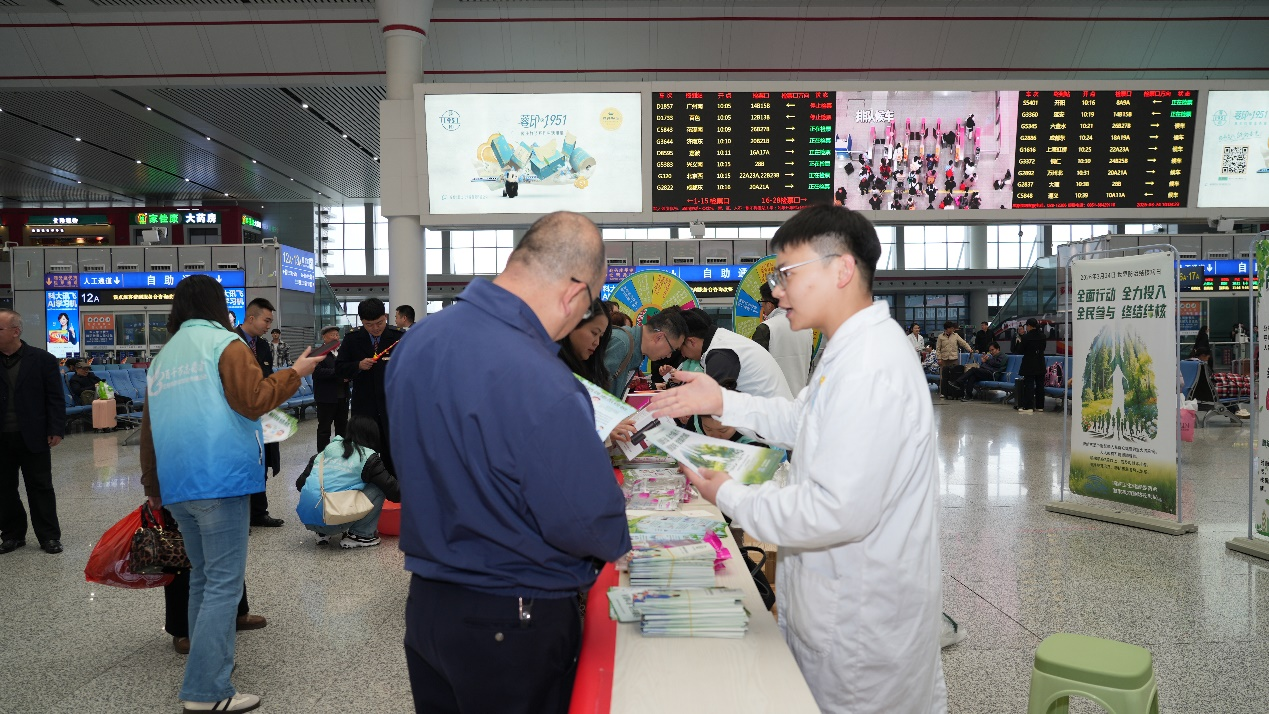 同时,工作人员与志愿者深入候车室各区域,向过往旅客发放宣传资料,用通俗语言讲解结核病常见症状、诊疗惠民政策,呼吁公众养成良好卫生习惯,出现可疑症状及时就医,以贴心服务传递健康关怀,让结核病防控理念随列车驶向各地。