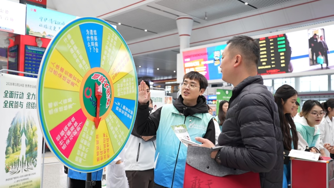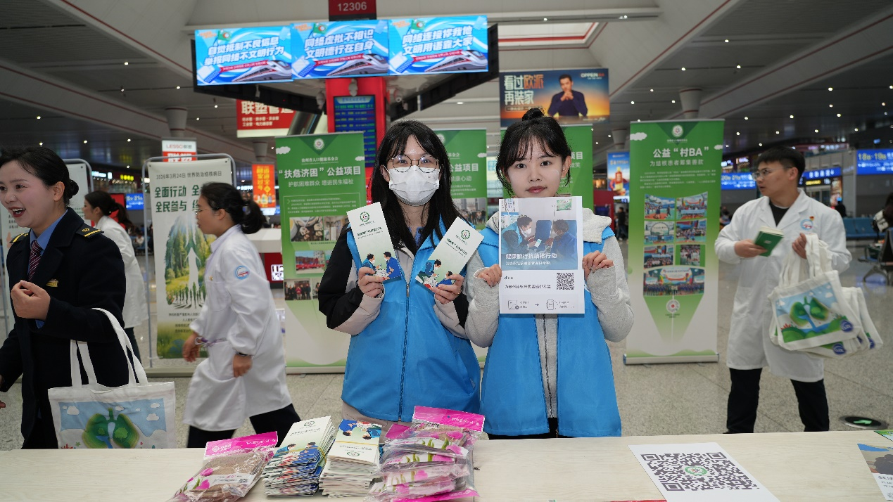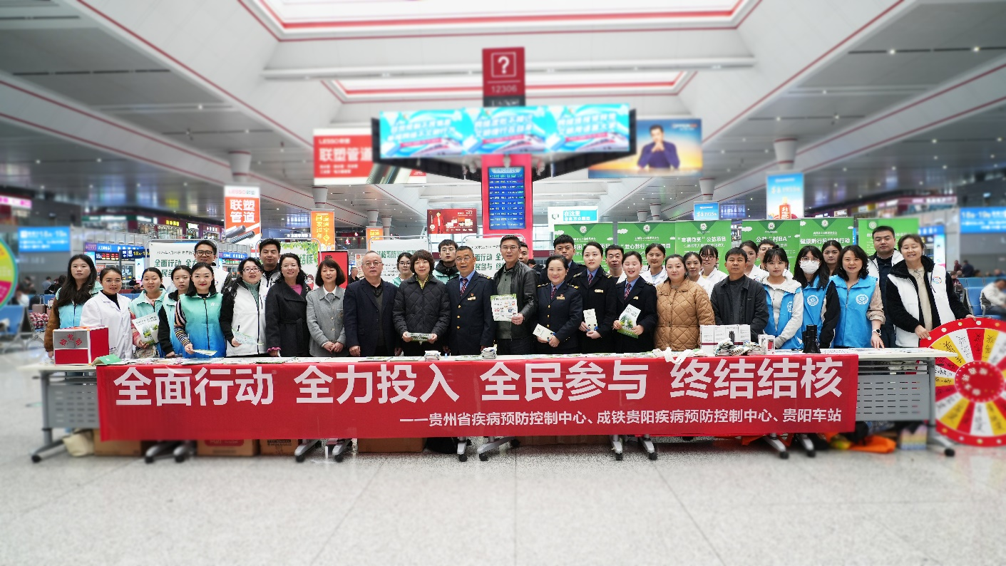 2026年3月24日是第31个“世界防治结核病日”。今年的宣传主题是“全面行动 全力投入 全民参与 终结结核”。为依托铁路交通枢纽扩大健康宣传覆盖面,将结核病防治知识传递给更多出行群众,贵州省疾病预防控制中心联合中国铁路成都局集团有限公司贵阳疾病预防控制中心、贵州省人口健康基金会,在贵阳北站开展主题宣传活动,以多元形式普及防病知识,营造全社会共防结核的良好氛围。