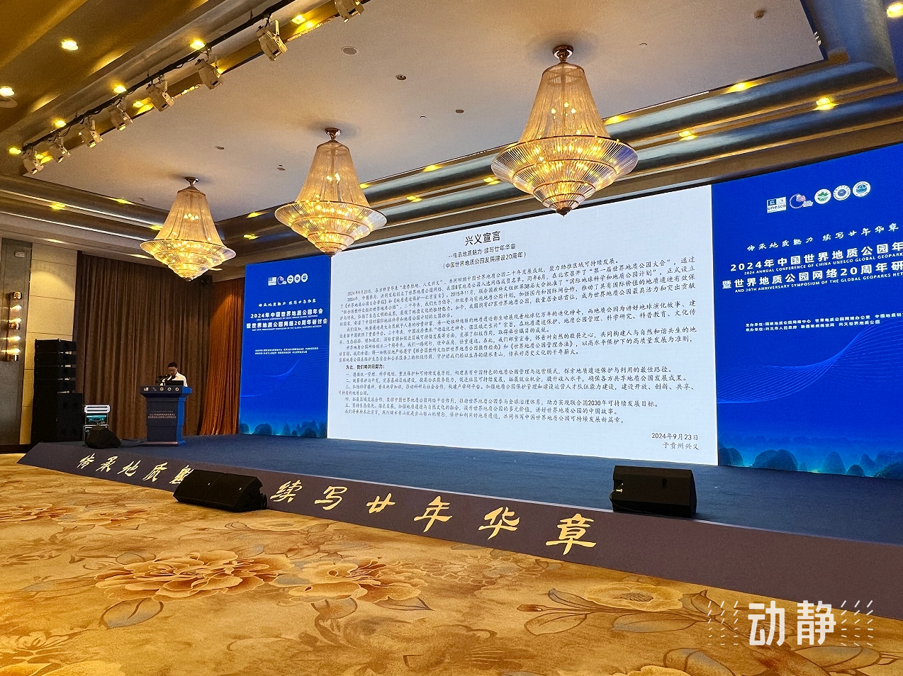 此外,现场还宣读了《中国世界地质公园发展建设20周年——兴义宣言》,共同探寻地球奥秘,共创和谐未来,并向下一届中国世界地质公园年会举办方江西省武功山世界地质公园授旗。