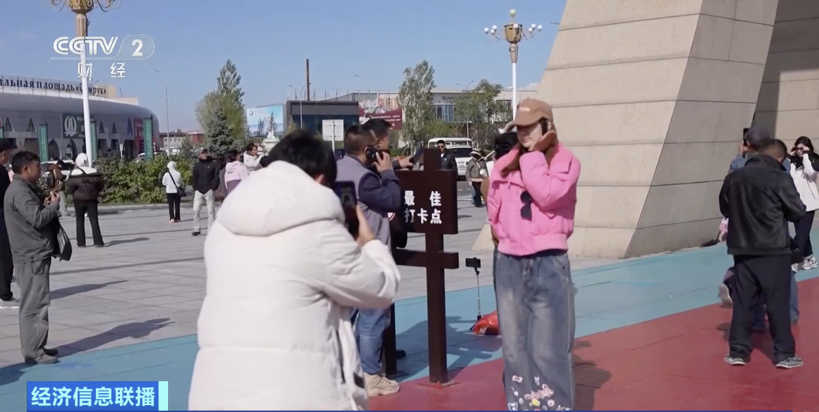 在被游客称为“一秒跨国”的标志性地点——中哈连接通道,人们纷纷打卡留念。
