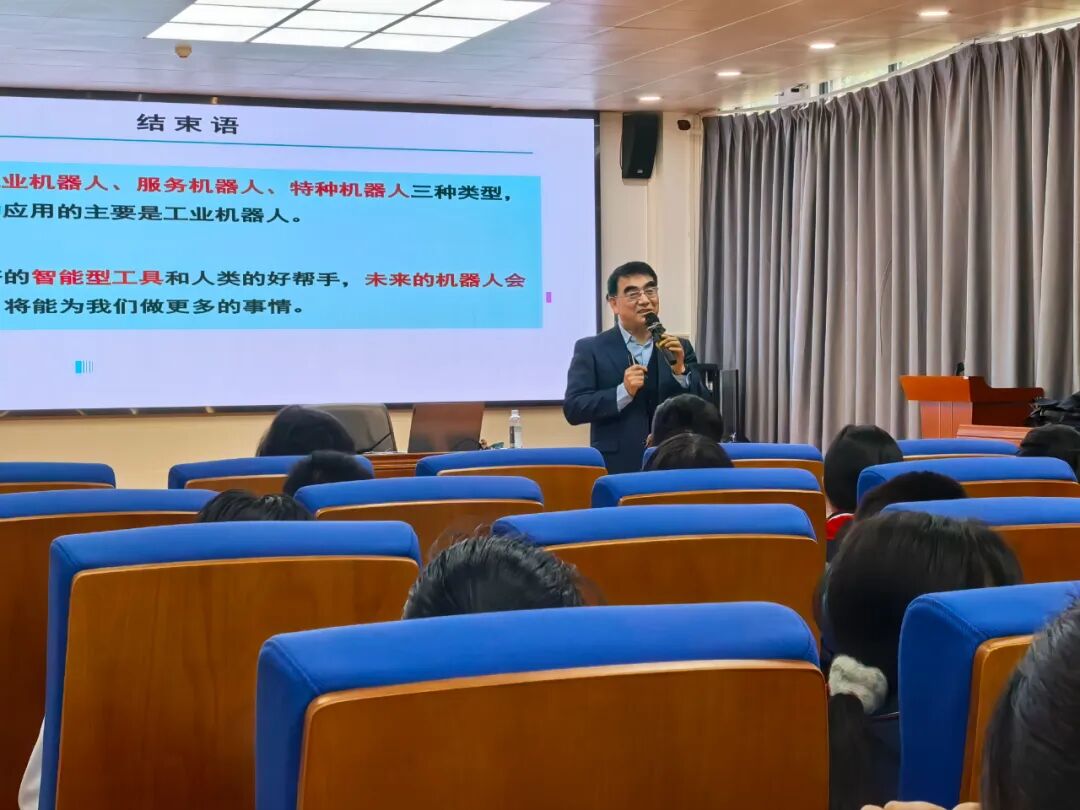 第三场讲座,原魁老师以《离我们越来越近的机器人》为题,为熙山郡分校的同学们解锁智能科技的奥秘。原老师是中科院自动化所研究员、博士生导师,中国青少年机器人竞赛专家委员会副主任,深耕智能机器人研究多年。他从 “什么是机器人” 入手,介绍了工业机器人、服务机器人、智能机器人的发展历程与应用场景,从工厂里的机械臂,到生活中的扫地机器人、医疗机器人,再到前沿的 AI 机器人,让同学们直观感受到机器人正一步步走进我们的生活。