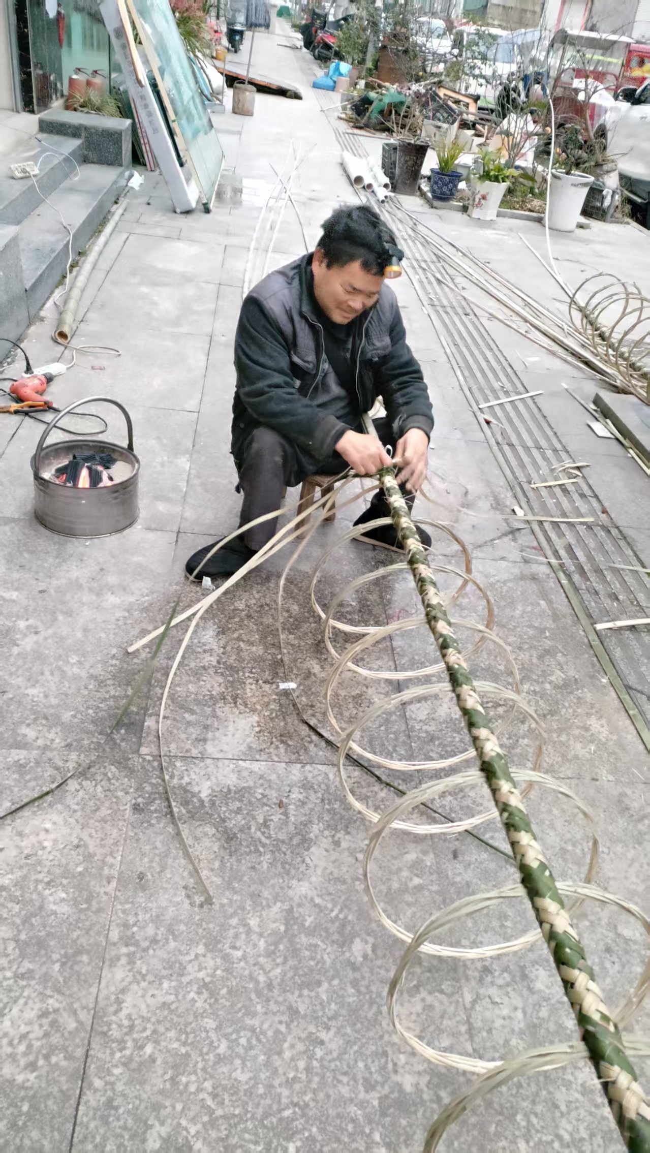 当年,杨秀付就把选竹子、裁竹条、扎竹条等编织龙灯的一套手艺学了个遍,并吸收转化成自己的技能。