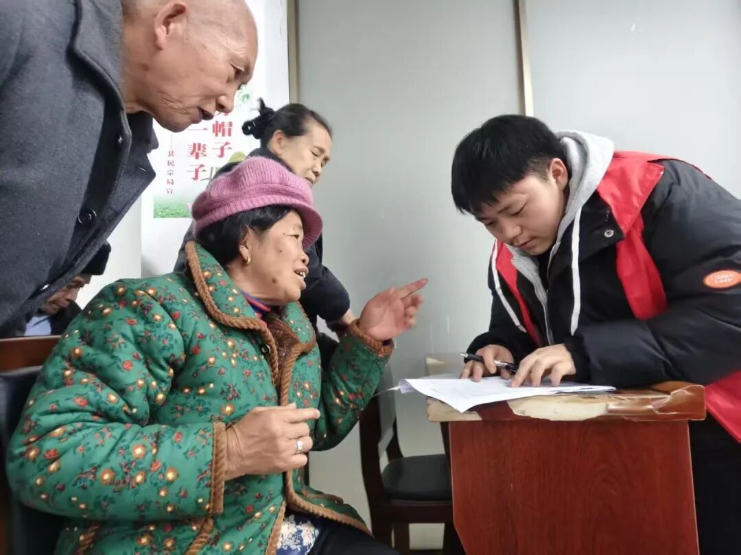 她走进独居老人家中,陪老人剥橘子、拉家常,擦拭灶台、整理衣物,用细致的照料让老人感受温情;跟随寨中长辈走访调研,了解当地民俗文化,协助开展春节前安全排查与环境整治,还结合所学向村民普及健康养护与作物防寒知识。