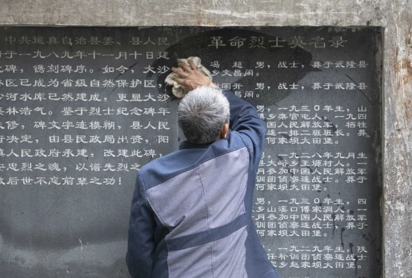 擦拭纪念碑、打扫树叶、清除杂草……邓岗华老人日复一日、年复一年地重复着,除了定期到阳溪镇上采购必需品和种植一些粮食蔬菜,守陵已不知不觉间成为他的日常。每逢清明、“七一”“八一”、烈士纪念日等,邓岗华老人还会向前来祭扫的人们义务讲述烈士故事。