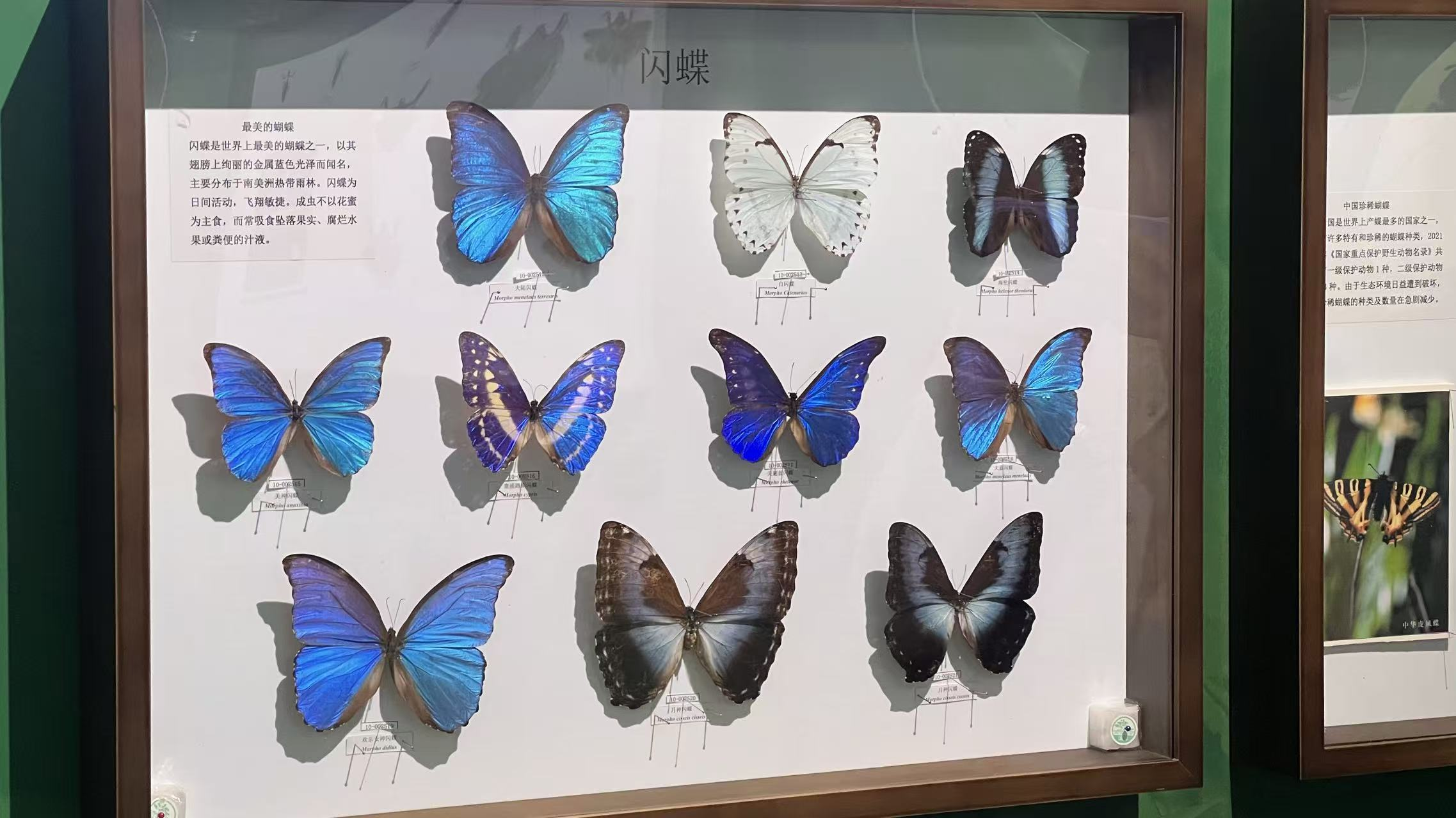 闪蝶、竹节虫、世界最大甲虫……各类珍稀标本在贵州省地质博物馆展出。今天上午,省地质博物馆围绕世界地球日主题,推出珍稀昆虫主题展和蜡染技艺专题展两大特色展览,珍稀昆虫主题展展出了400多个展品,以标本展示、科普解读等多种形式,呈现昆虫多样形态,生动展现生物多样性价值。同时,蜡染技艺专题展展出100多件展品,包括蜡染纹样、服饰等,传递人与自然共生的文化内涵。