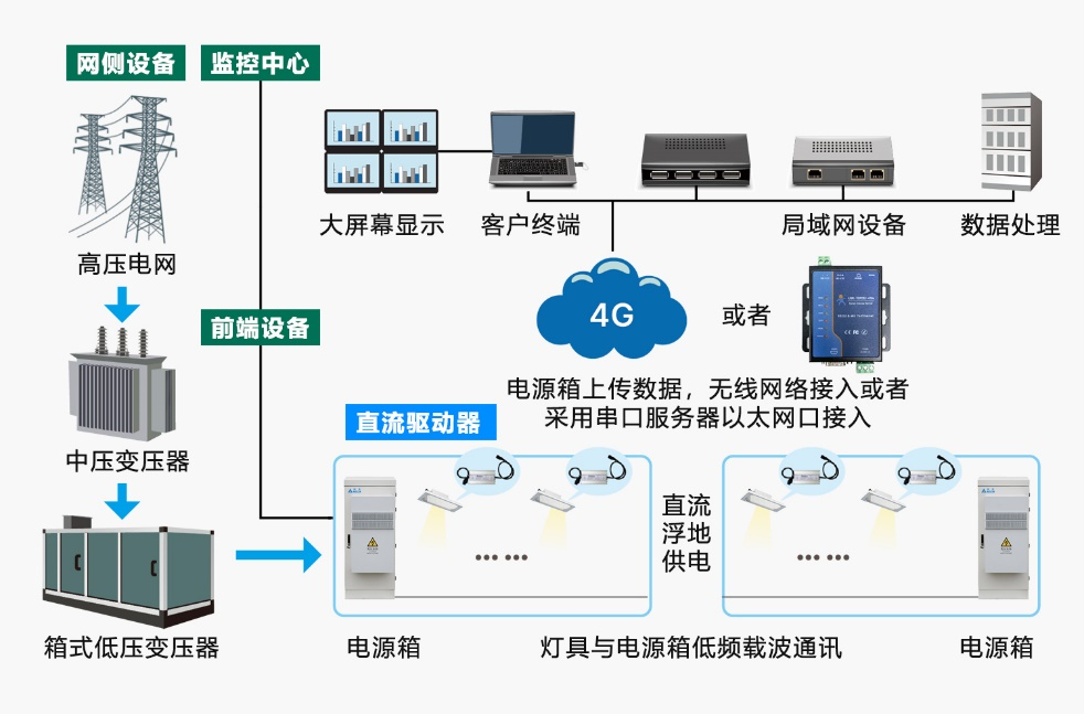 智能调光,控制精简:依托直流供电信号稳定的天然优势,引入电力载波通讯技术,复用供电线路实现灵活调光,既满足不同区段的照明需求,也大幅减少了控制电缆的用量与成本。