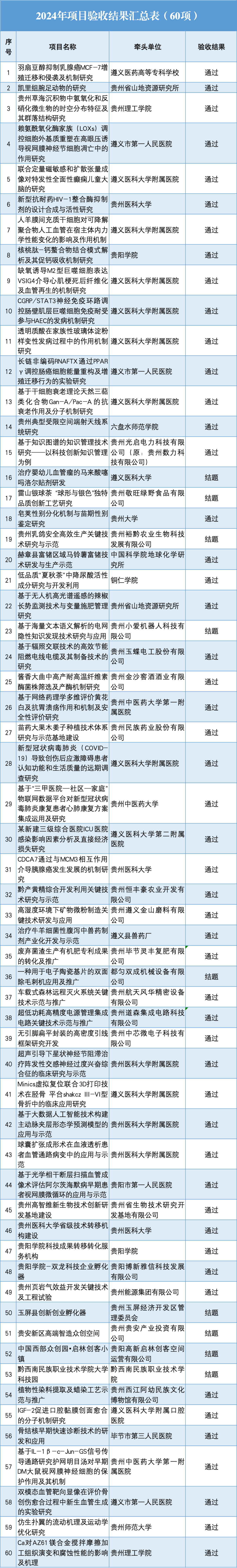 2024年贵州省省级科技计划项目验收结果公示(60项)