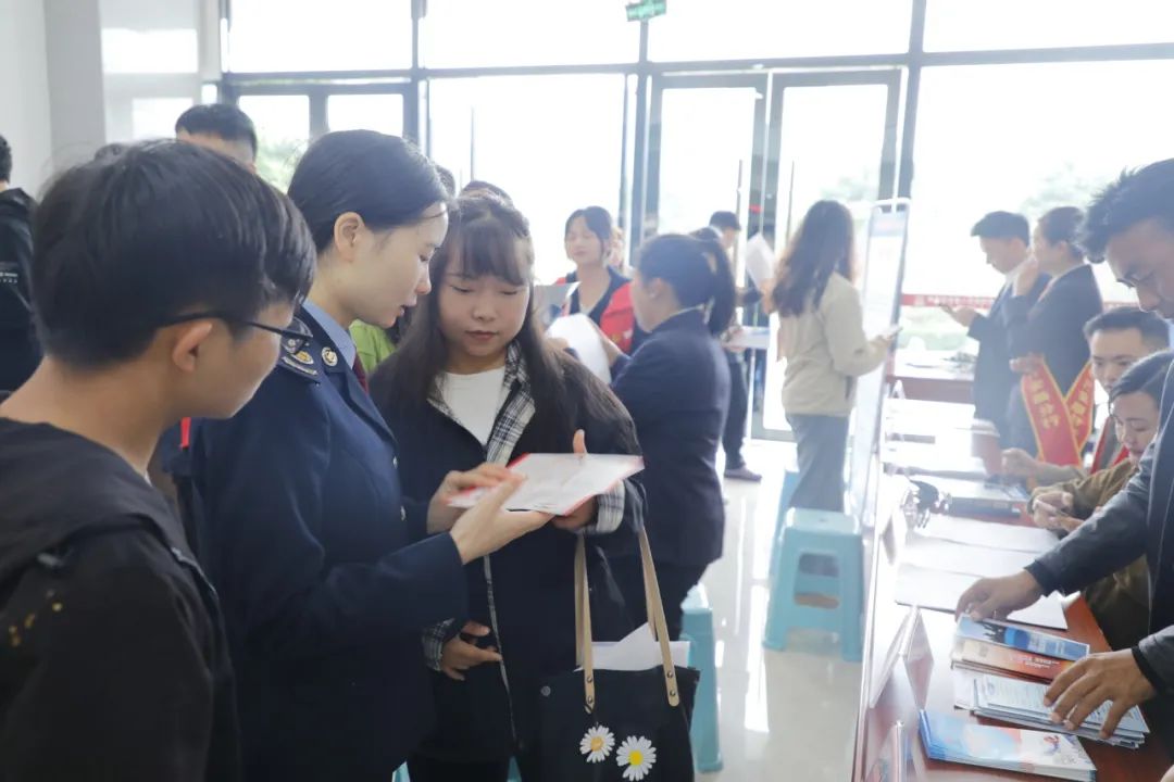 近日,在关岭自治县人社局主办的2023年“就在金秋 职面未来”招聘会现场,关岭自治县税务局的税务干部们为企业和求职者们送上政策“大礼包”。