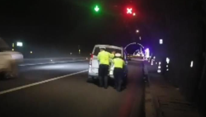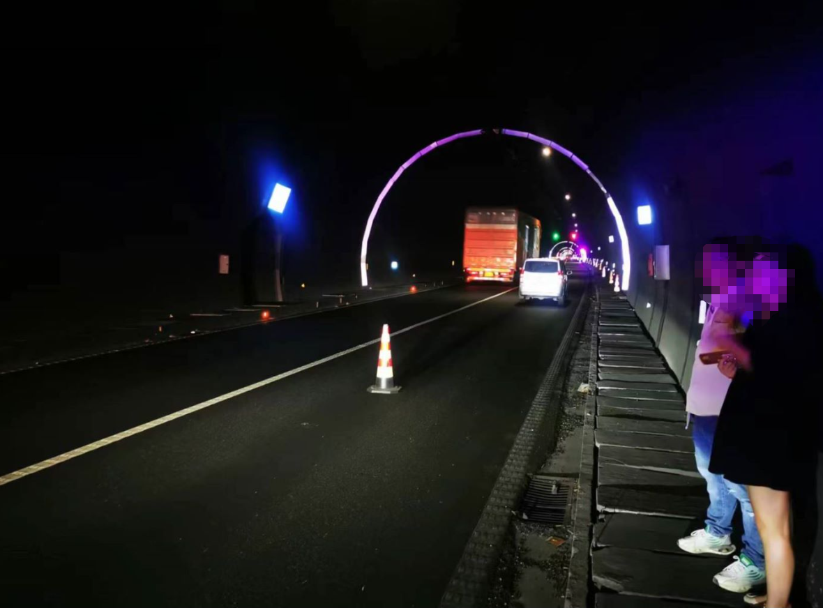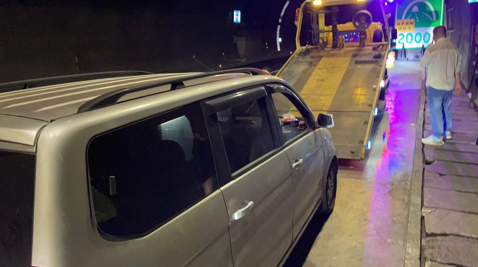 路面巡逻组到达现场后,立即拉响警报警戒后方来车,并在故障车辆后方设置反光锥筒;由于救援到达现场需要一段时间,为避免发生次生事故,民警立即组织人员合力将车辆推到隧道内加宽车道等待救援。经询问驾驶人得知:车辆行至隧道内时发动机皮带突然断裂,造成车辆无法行驶,正当车上人员惊慌失措时,高速交警及时赶到。随后,救援车到达现场将故障车辆拖离,高速交警将驾驶员以及乘客带出高速公路。