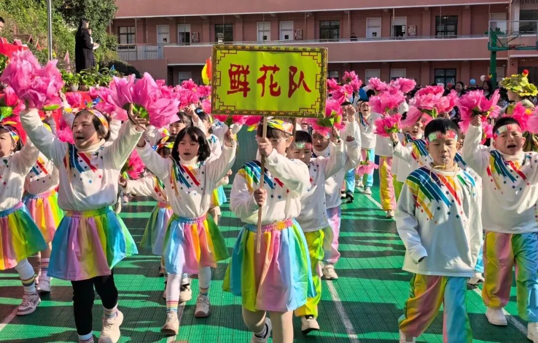 文艺汇演结束后,入场检阅式隆重举行。英姿飒爽的国旗队率先入场,他们迈着整齐步伐守护五星红旗,彰显爱国情怀;会徽队、仪仗队、鲜花队、舞蹈队、合唱队、彩旗队依次跟进,各队精神抖擞、气势昂扬,展现师生良好风貌。最后,全校各班学生身着特色服饰、手持精心准备的道具,迈着自信矫健的步伐依次入场,嘹亮口号与创意编排点燃现场热情,尽显学子朝气蓬勃、团结向上的精神面貌。